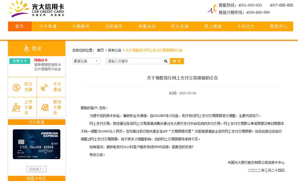 中国光大银行股份有限公司信用卡中心二〇二二年三月二十四日