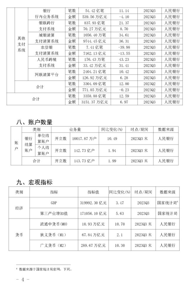 日前,中国支付清算协会发布了《2023年第三季度支付清算行业总量指标》,该指标详细列举了2023年Q3非银行支付机构、信用卡、收单交易业务量、POS机终端等相关数据。