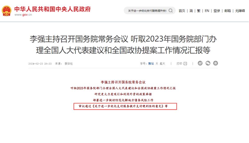 23日晚间国常会召开,会议审议通过了《关于进一步优化支付服务提升支付便利性的意见》(下称《意见》)等多项内容。