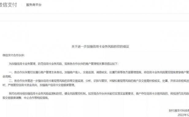 微信支付再发公告严控信用卡套现,大量商户风控无法刷卡……