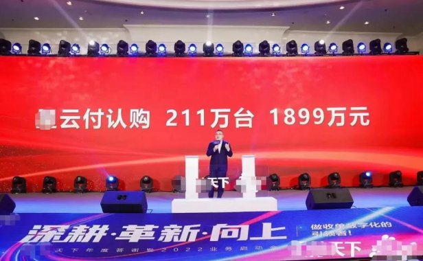 虎年,已经过去半个月了,除了码牌火爆,还没有其他的产品发布会,今天X付在上海开了新年的第一场产品发布会(年会),现在认购211万台,1899万元。 据现场代理爆料,山西某机构,现场打款450万,认购50万台。据了解,X云付2022年市场营销政策,首付款9元,电签99元每台,尾款90从激活返现中抵扣。 2021年底,关于一机一户,关于mpos清退等传闻,有些支付同行信心不足,现在持观望态度,此次发布…- 94