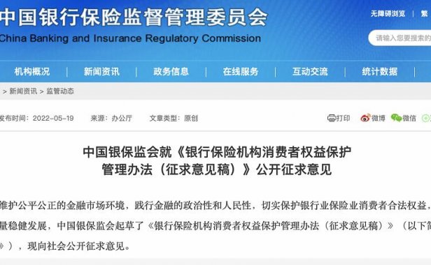 银保监会发布:银行保险机构消费者权益保护管理办法(征求意见稿)
